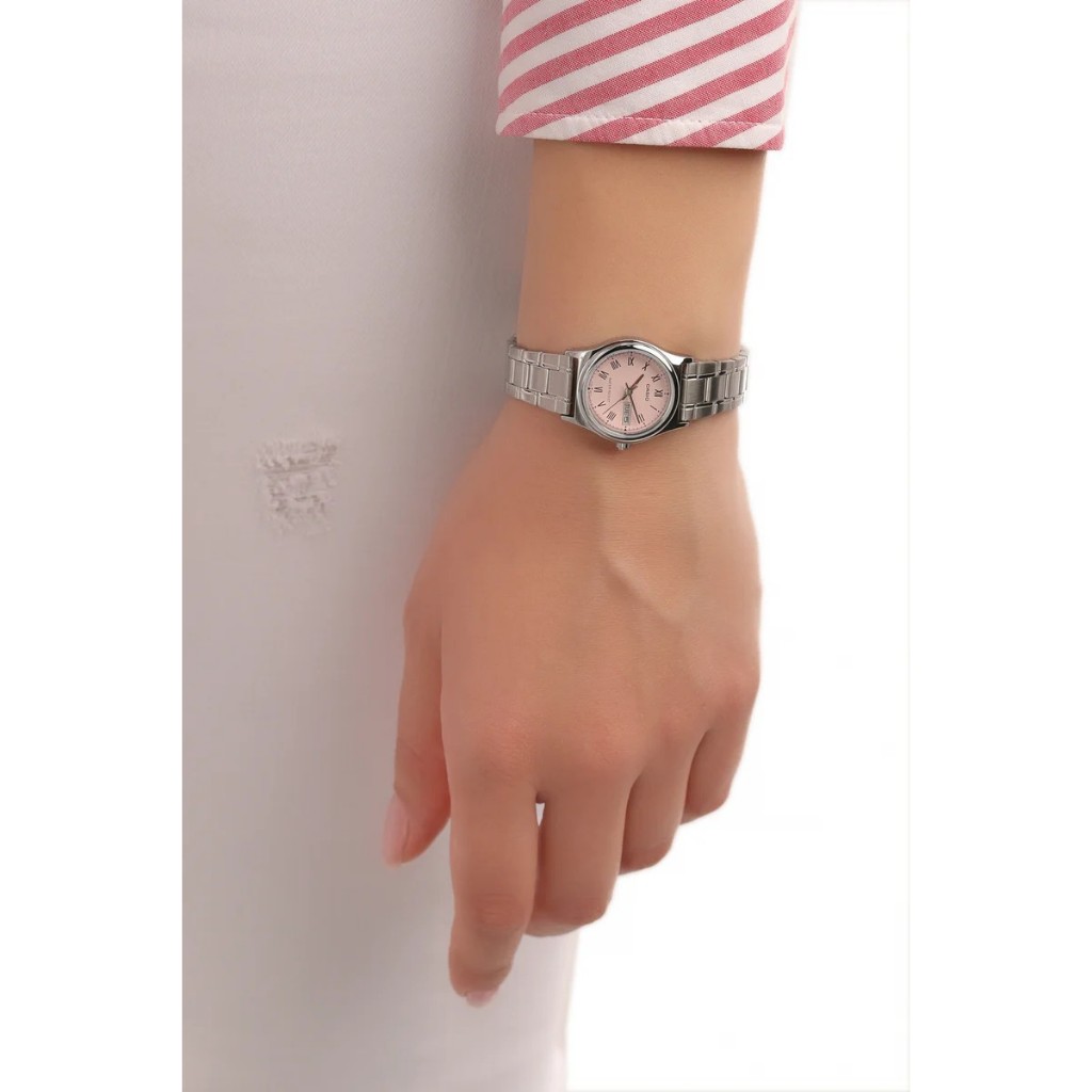 Jam Tangan Wanita Analog Casio Standard LTP-V006D-4BUDF LTPV006 LTP-V006D Pink Dial Stainless Steel Band