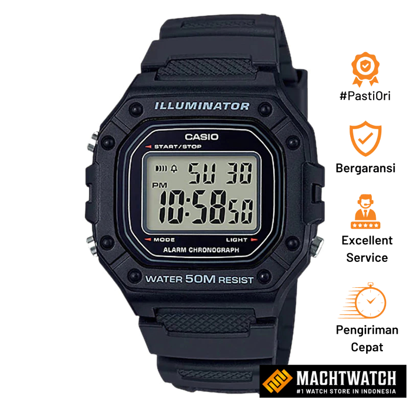 Jam Tangan Pria Digital Casio Standard W-218H-1AVDF W218 W-218H Dial Black Resin Band