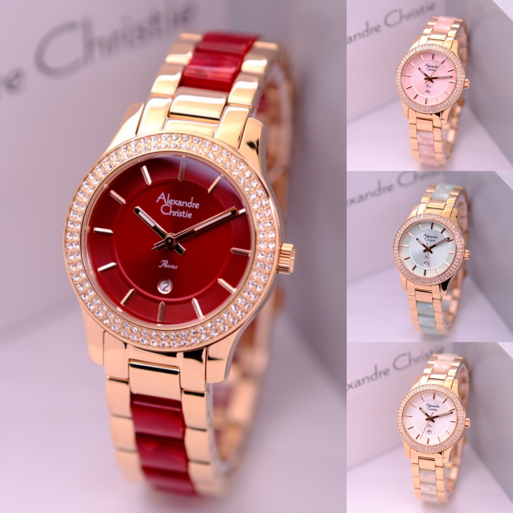 ORIGINAL Jam Tangan Wanita Alexandre Christie AC 2463 / AC2463 / 2463 Garansi Resmi 1 Tahun, Stainless Kombinasi Keramic