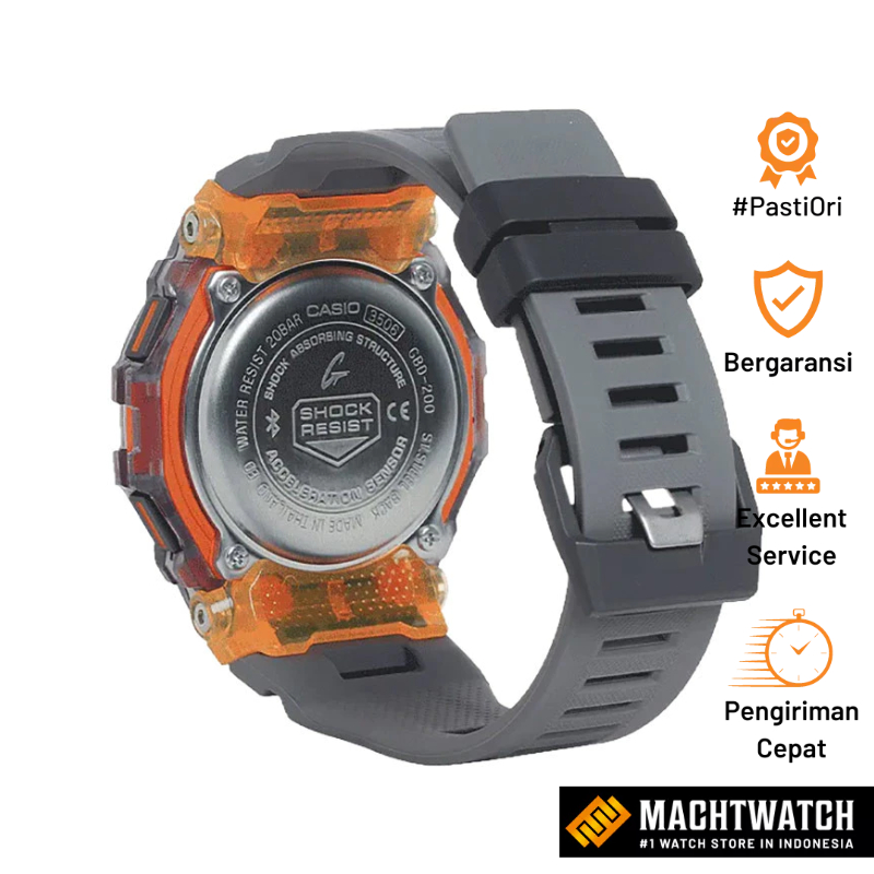 Jam Tangan Pria Digital Casio G-Shock GBD-200SM-1A5DR G-Squad Vital Bright Grey Resin Band