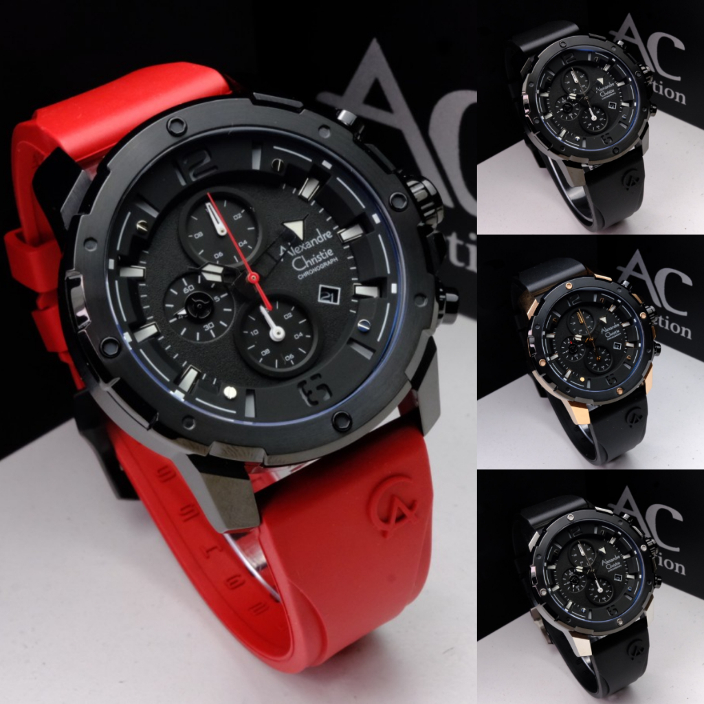 ORIGINAL Jam Tangan Pria Alexandre Christie AC 6410 / AC6410 / 6410 Garansi Resmi 1 Tahun, Leather & Rubber