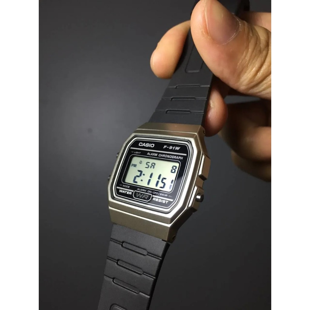 Jam Tangan Unisex Digital Casio Standard F-91WM-7ADF F91 F-91W Vintage Series Digital Dial Black Resin Band