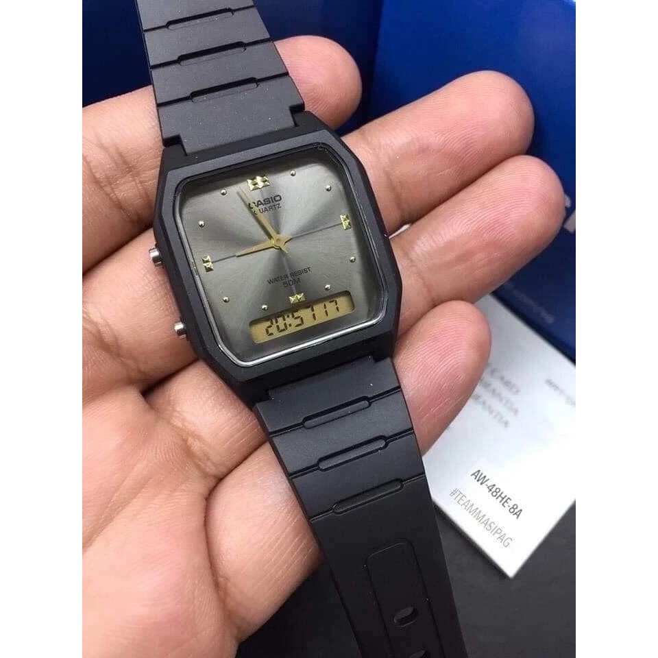 Jam Tangan Unisex Analog Casio Standard AW-48HE-8AVDF AW48 AW-48HE Dial Black Rubber Band