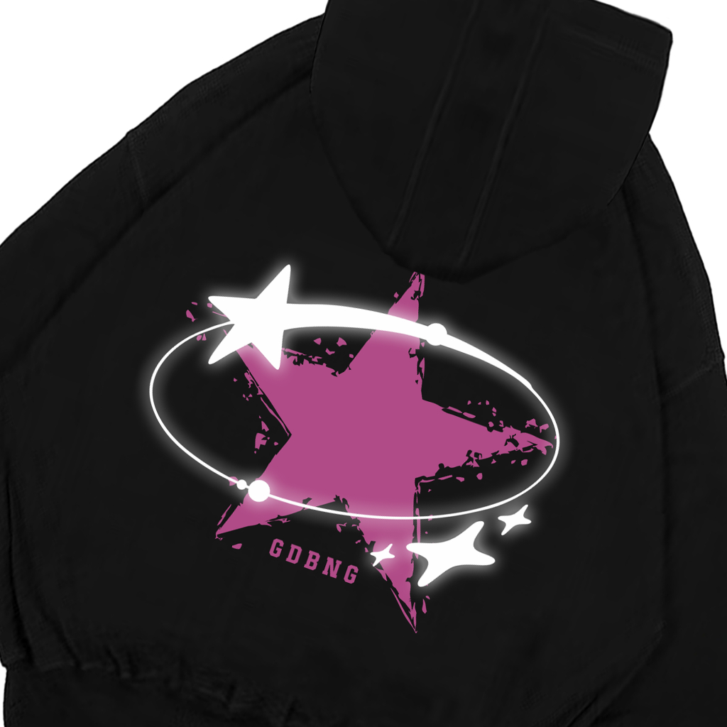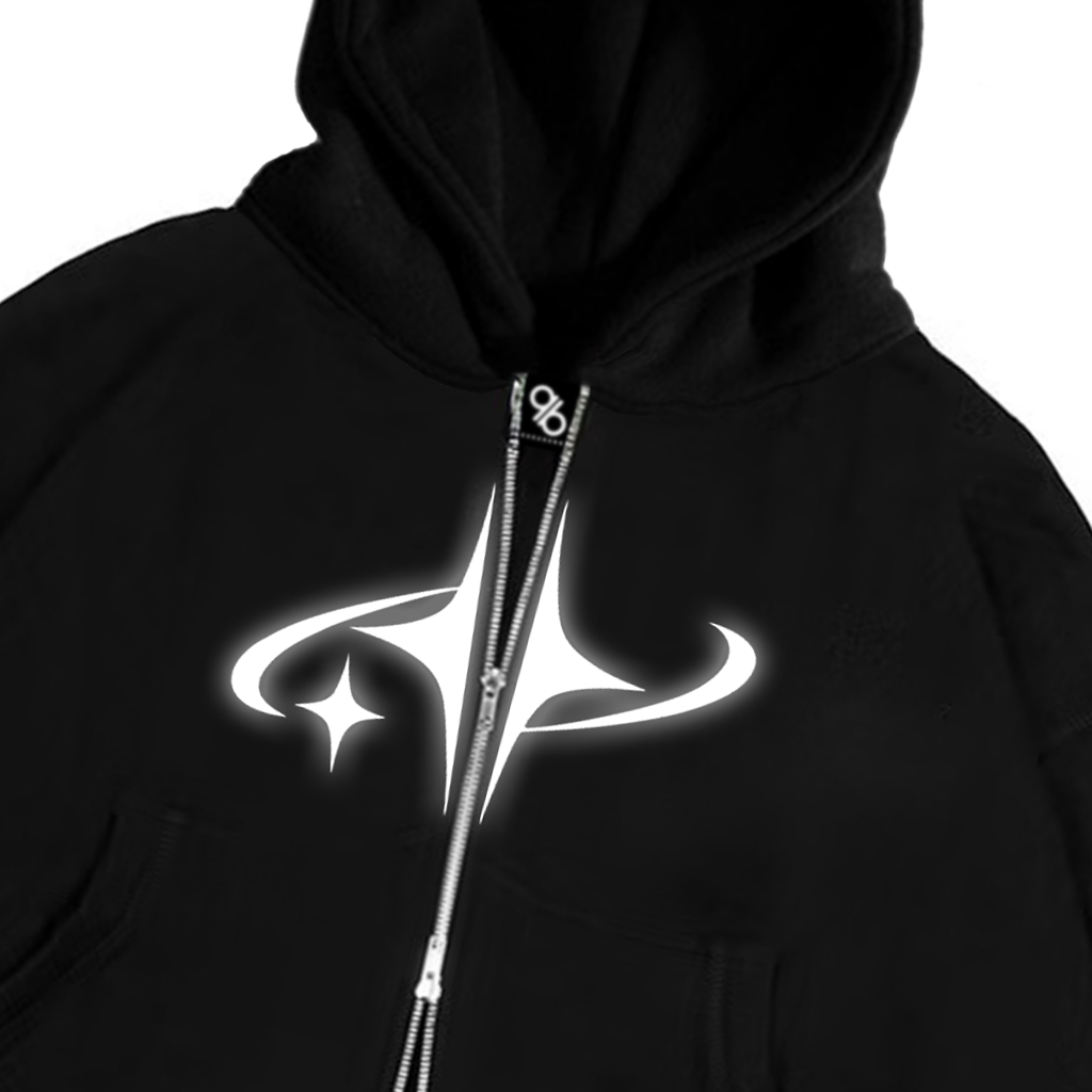 Gadabang Hoodie Boxy Double Zipper Menyala Sablon Reflective Star Hitam