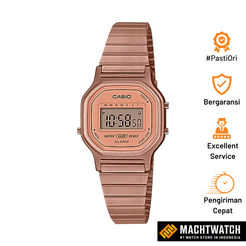 Jam Tangan Wanita Casio Standard LA-11WR-5ADF LA11 LA-11W Rose Gold Digital Dial Rose Gold Stainless Steel Band