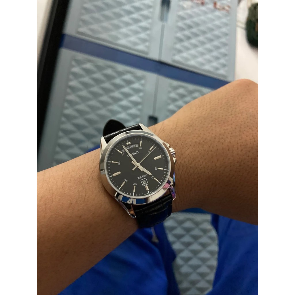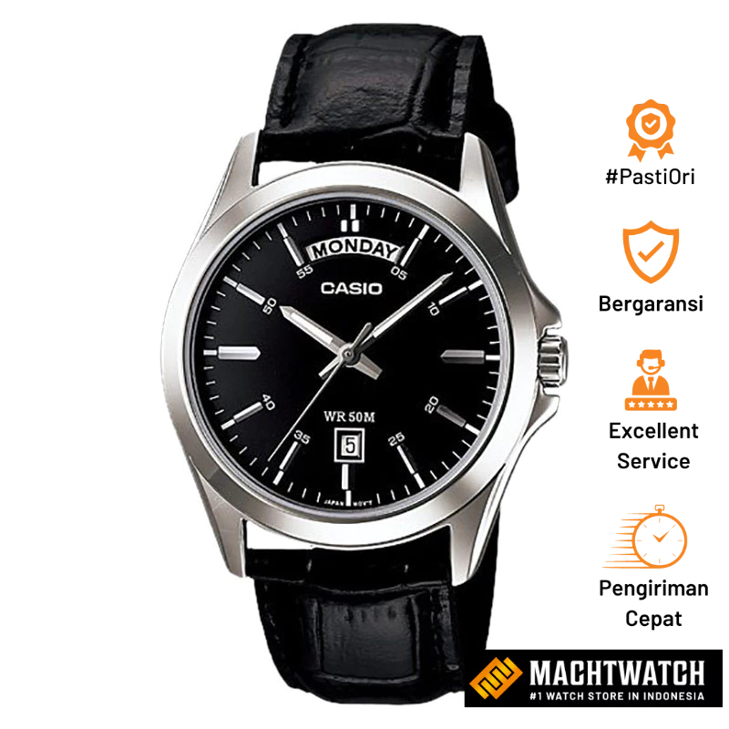 Jam Tangan Pria Analog Casio Standard MTP-1370L-1AVDF MTP1370 MTP-1370L Enticer Black Dial Black Leather Strap