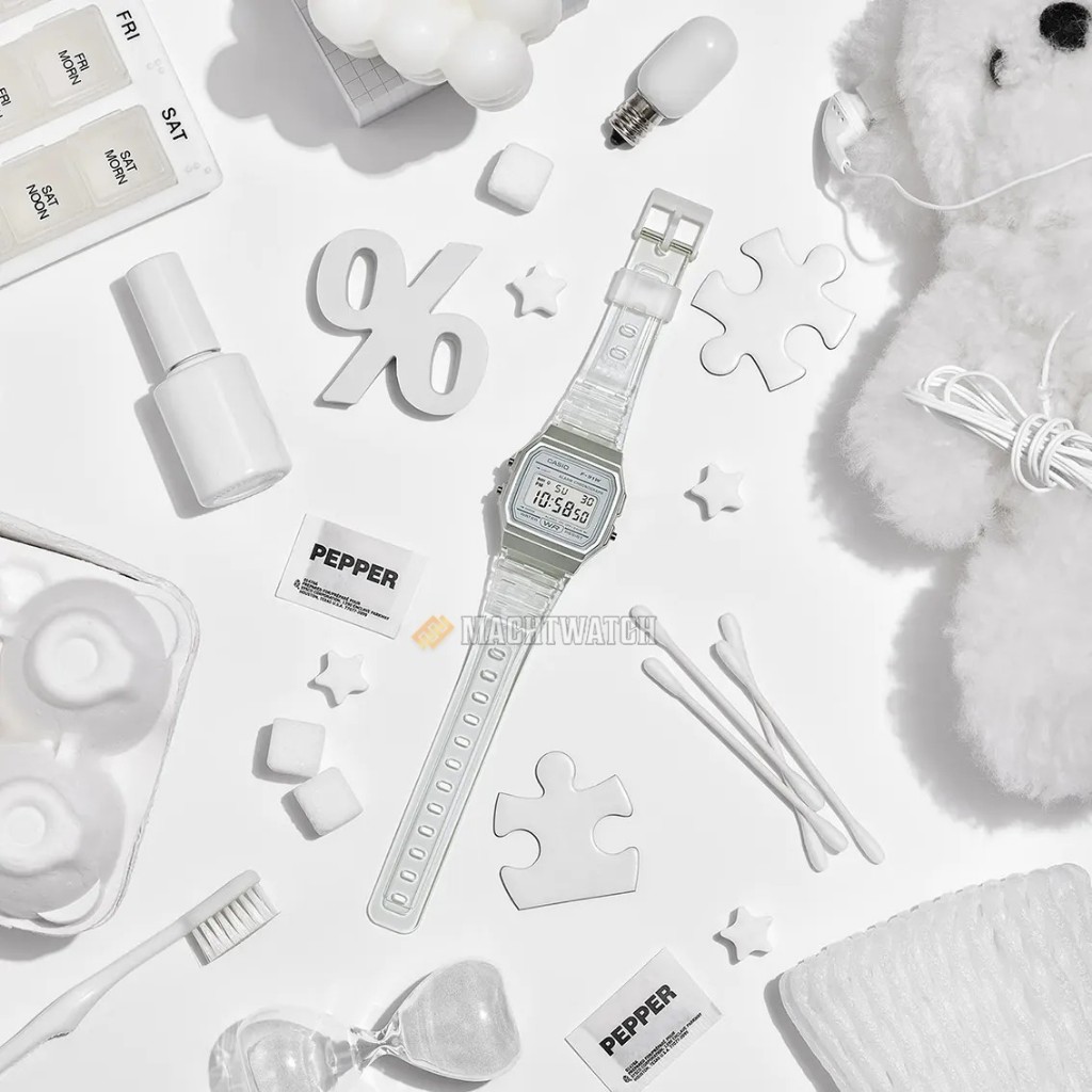 Jam Tangan Wanita Digital Casio Standard F-91WS-7DF F91 F-91W Dial Transparency Rubber Band