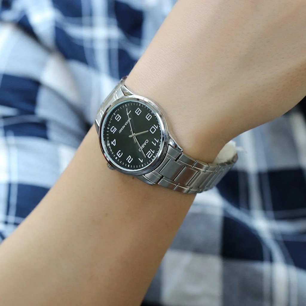 Jam Tangan Pria Analog Casio Standard MTP-V001D-1BUDF MTPV001 MTP-V001D Black Dial Stainless Steel Band