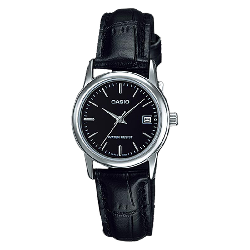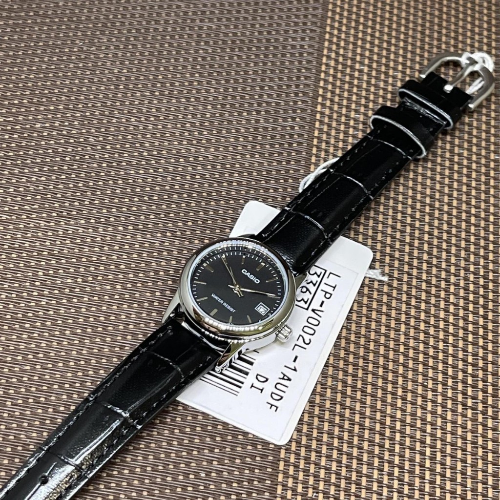 Jam Tangan Wanita Analog Casio Standard LTP-V002L-1AUDF LTPV002 LTP-V002L Black Dial Black Leather Band