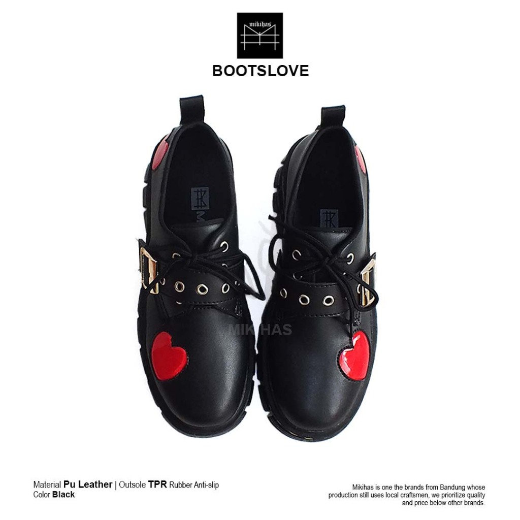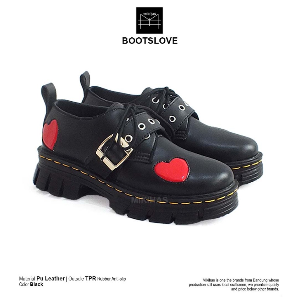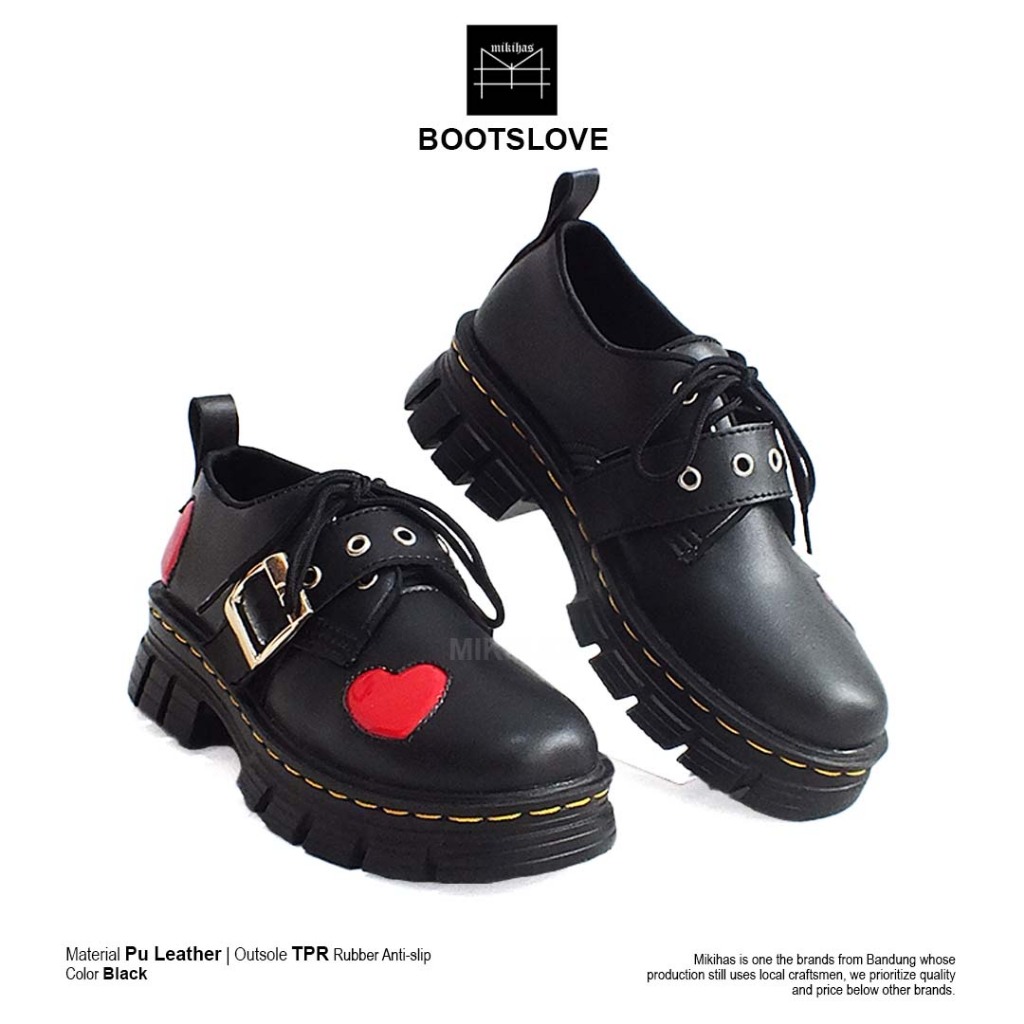 Mikihas Boots'Love - Sepatu Boots Skena Wanita Kekinian Vintage Shoes Hitam Kulit Sintetis Premium