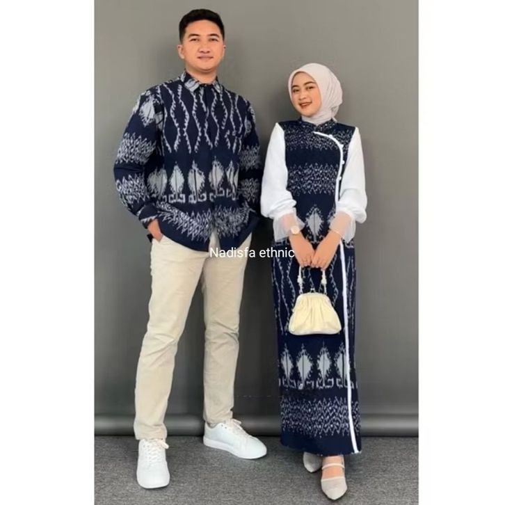 Set Couple Baju Tenun Kinara Jenar Dress Navy Gamis Wanita Terbaru