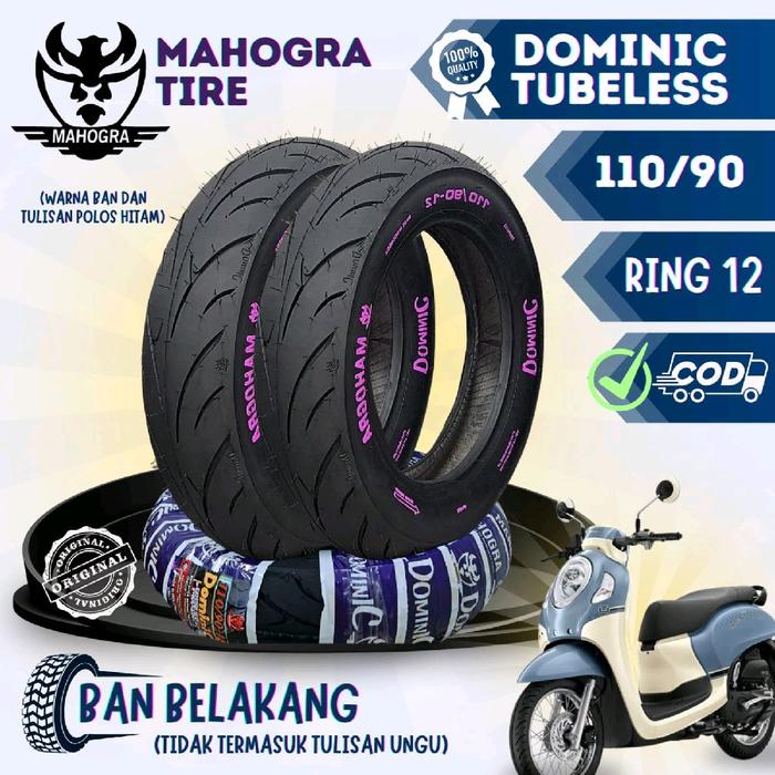 Dominic Uk 110/90-12 Ban Belakang Tubeless Mahogra Ring 12 Ban Motor Roda Motorcycle Karet Mesin