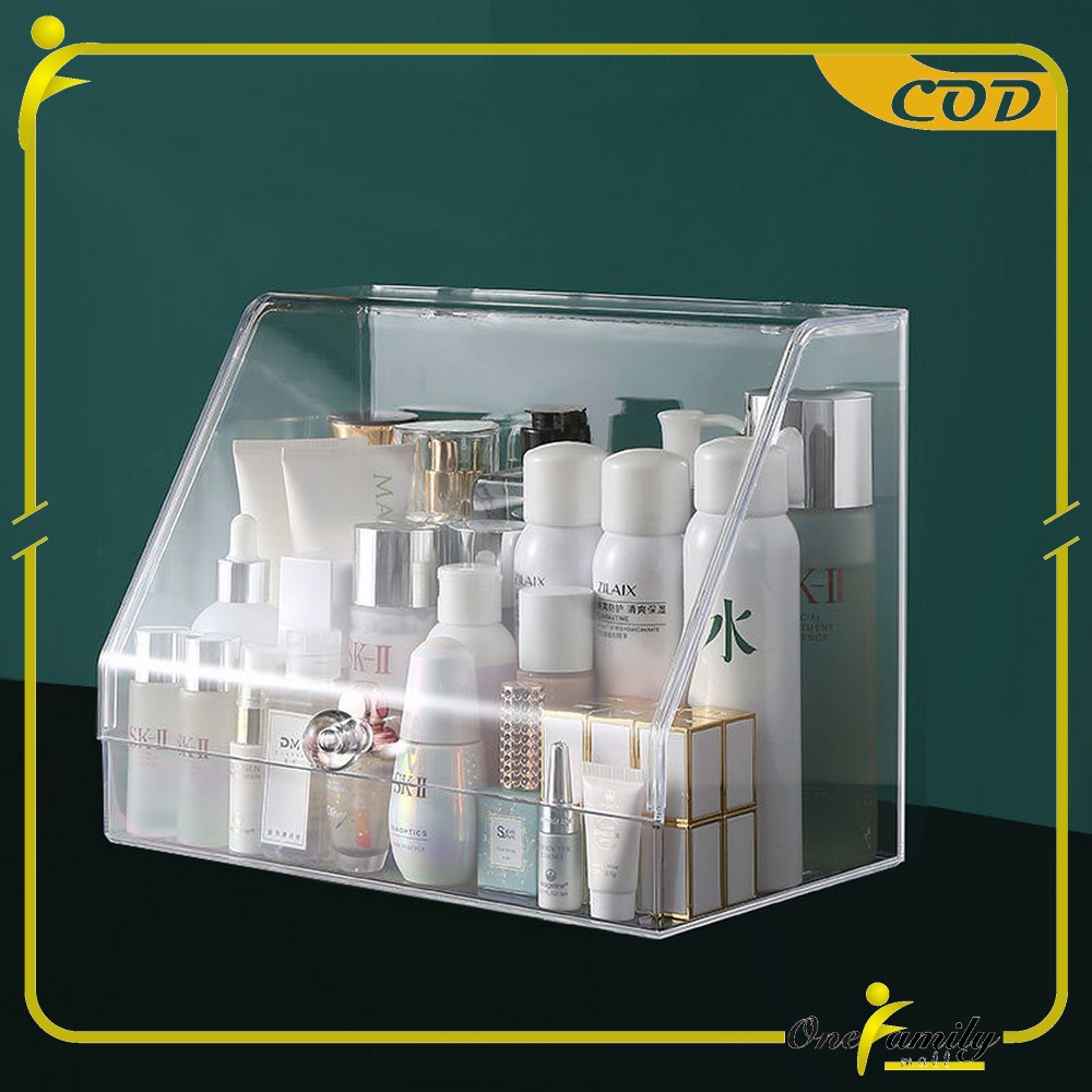 ONE-K133 Rak Kosmetik Acrylic Transparan Dengan Penutup Anti Debu Storage Box / Tempat Penyimpanan Laci Rak Make Up Skin