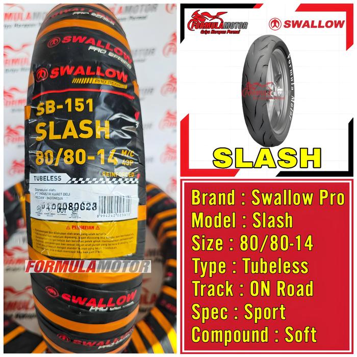 Swallow Slash Ring 14 Tubeless All Size Profil Donat Soft Compound Ban Motor Matic Tubles Sb151 Sb-151 80/80-14, 80/9