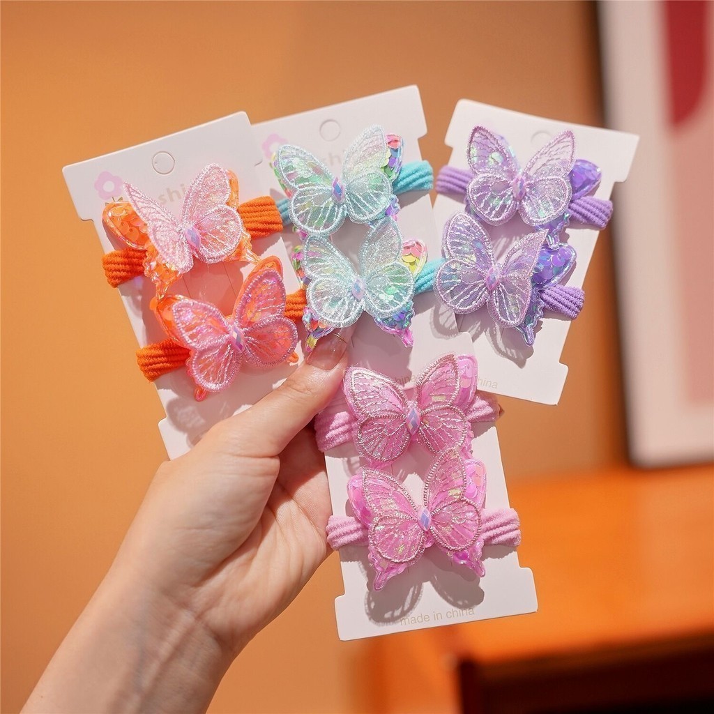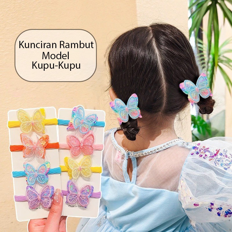 2PCS / SET IKATAN RAMBUT ANAK MODEL KUPU-KUPU GAYA KOREA / KUNCIRAN RAMBUT DONAT ANAK MOTIF BUTTERFLY