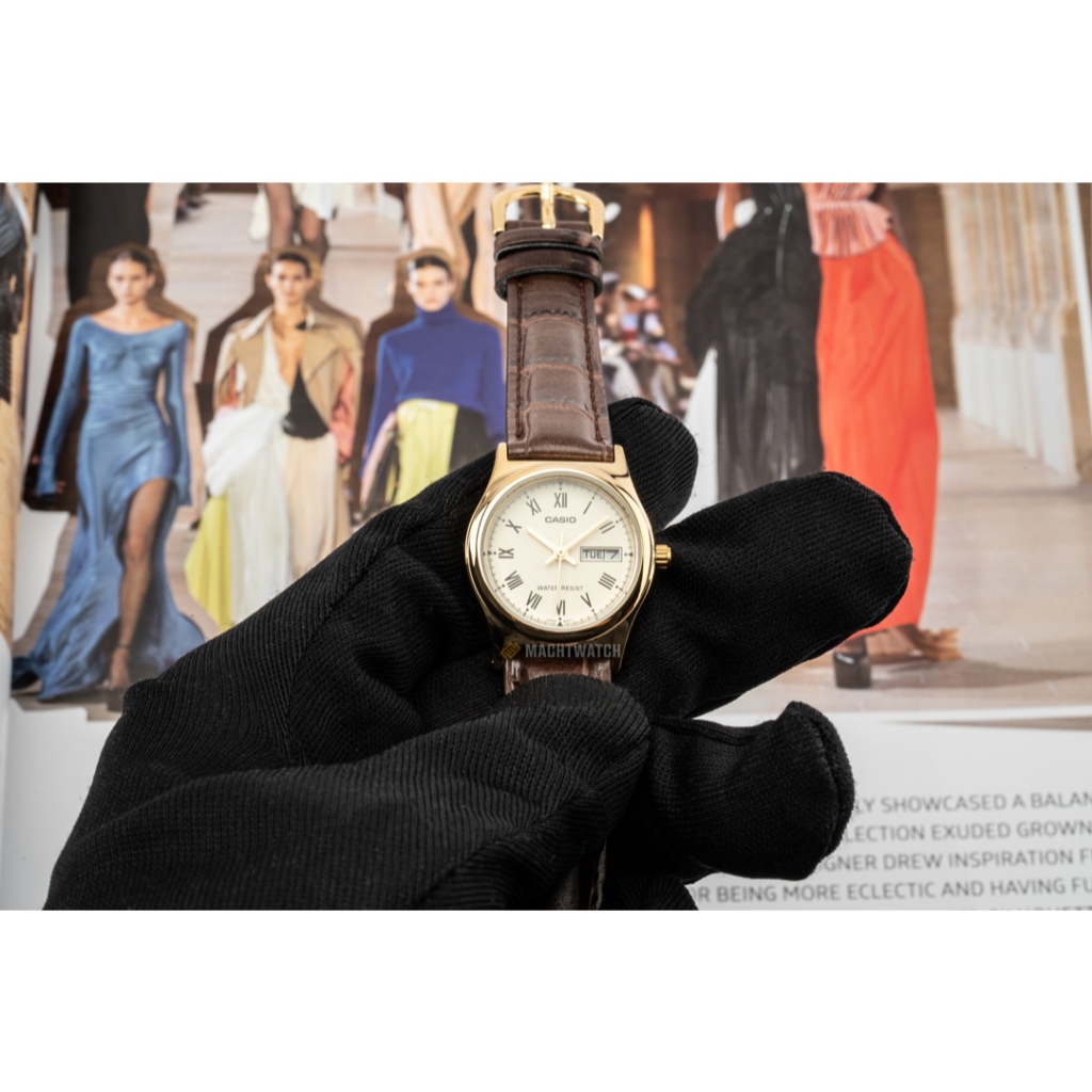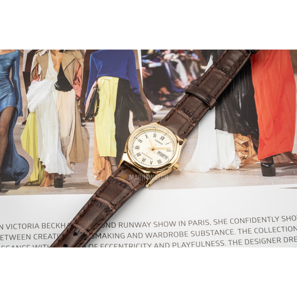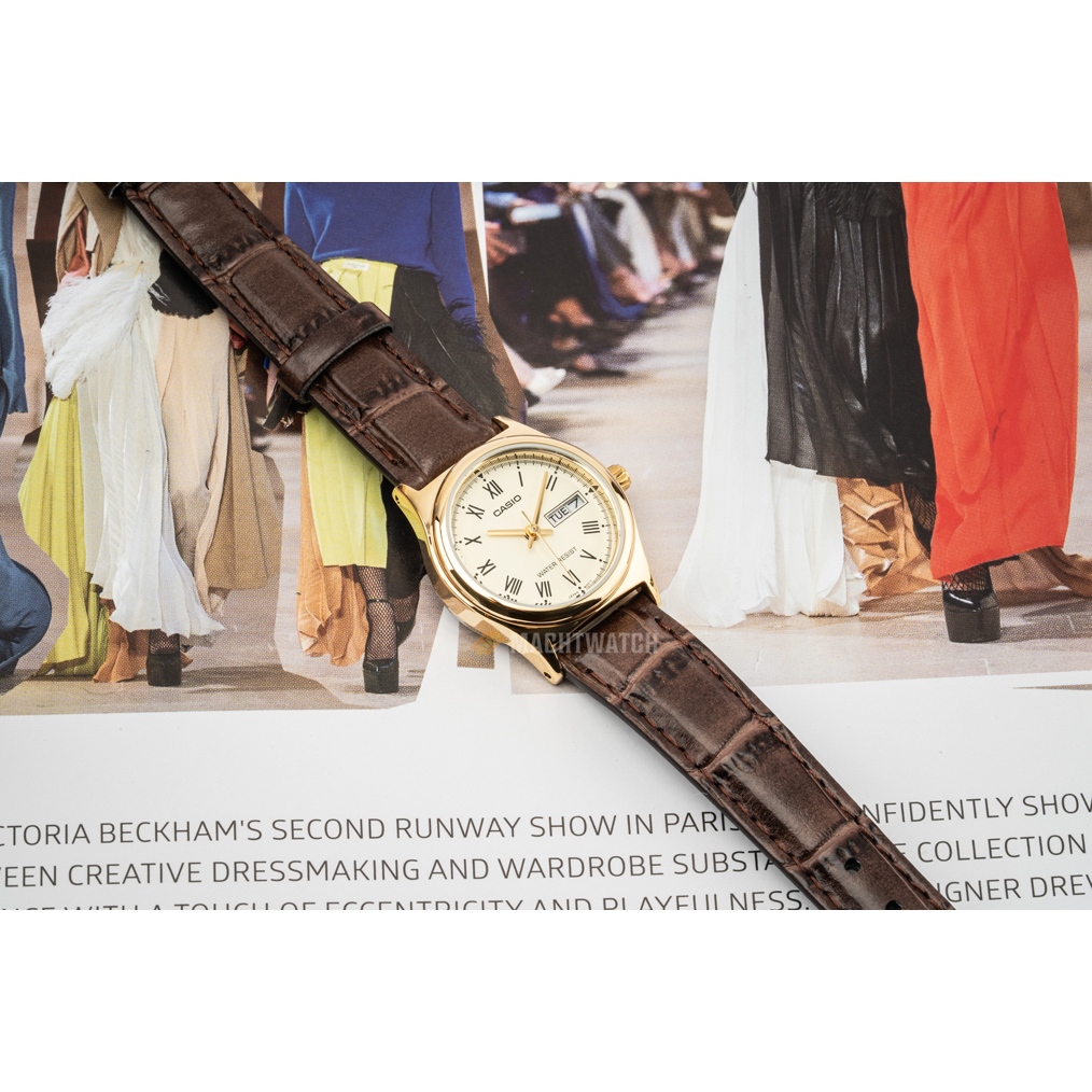 Jam Tangan Wanita Analog Casio Standard LTP-V006GL-9BUDF LTPV006 LTP-V006G Analog Beige Dial Brown Leather Band