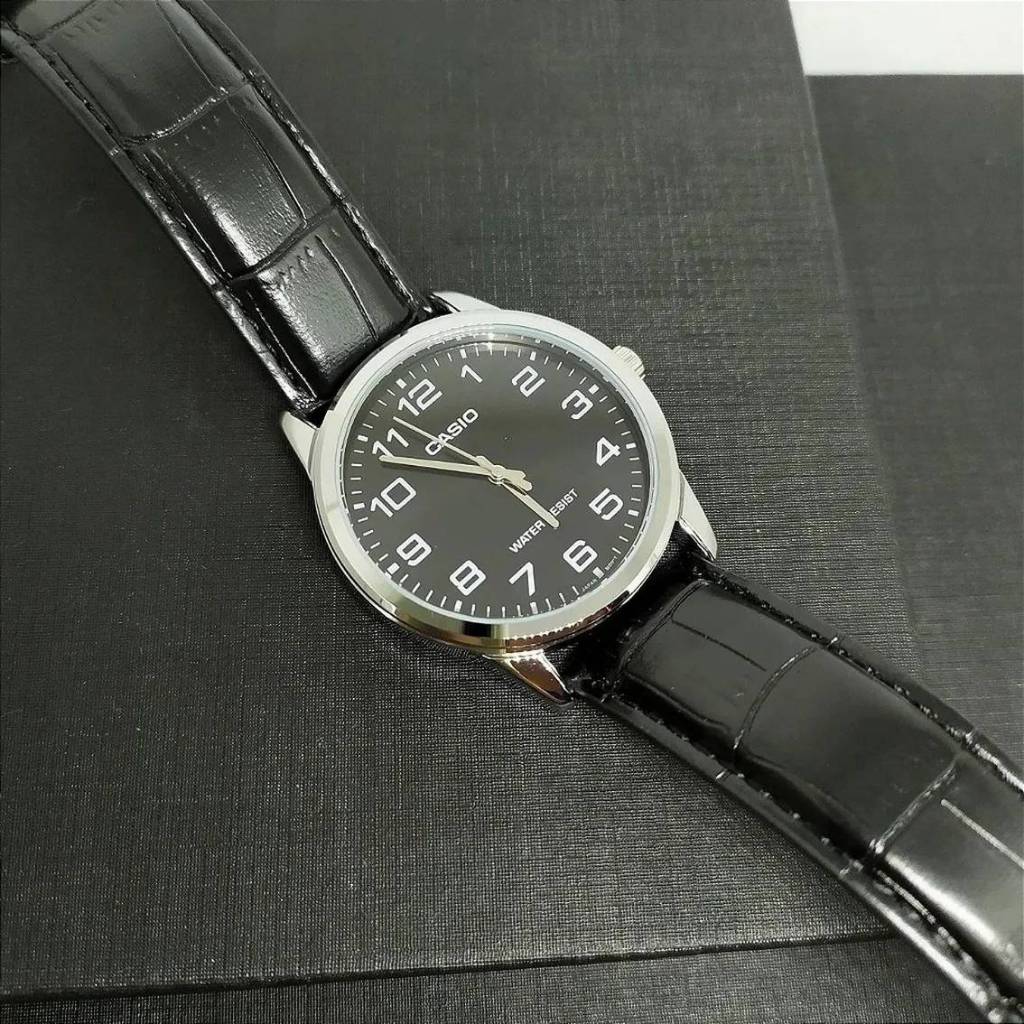 Jam Tangan Pria Analog Casio Standard MTP-V001L-1BUDF MTPV001 MTP-V001L Black Dial Black Leather Band