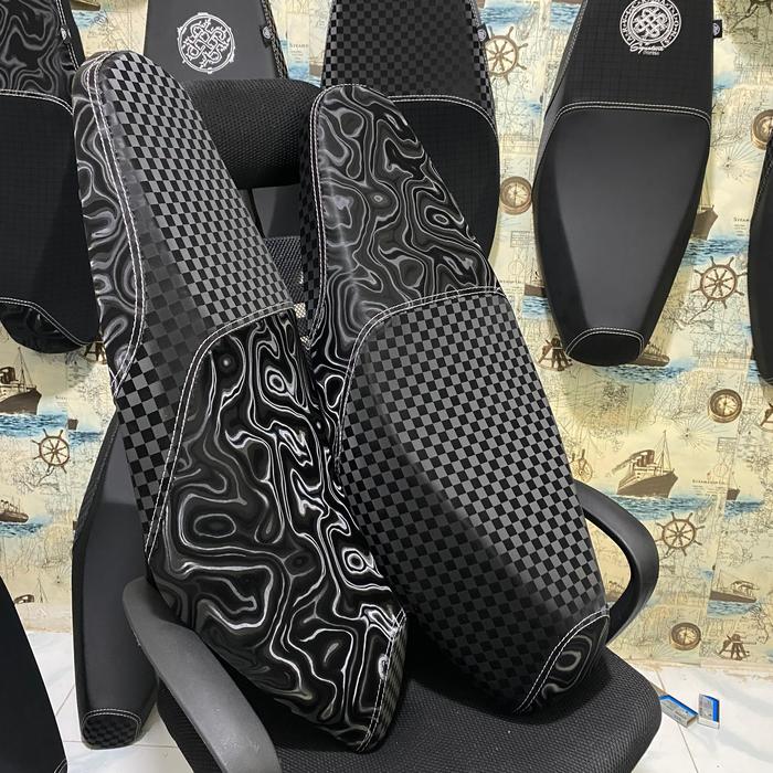 Kulit Jok Motor Motif Abstrak X Carbon Catur 4D Di Jahit Rapih Semua Type Motor Metic Dan Bebek - Mode 1, Vario Kzr