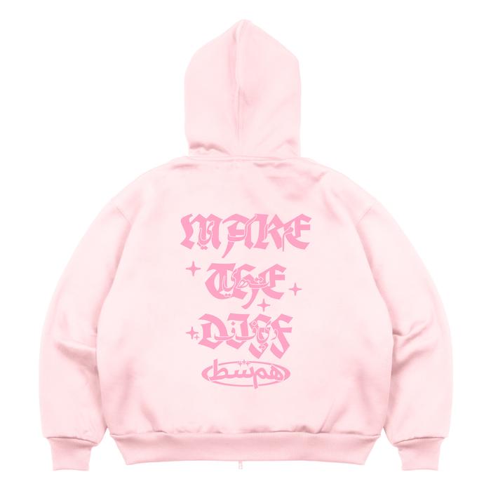 Gratis,Sticker Himside - Diff Hoodie Double Zip Pink And Sweatpants Fleece - Unisex - Hoodie Double Zipper , Xl