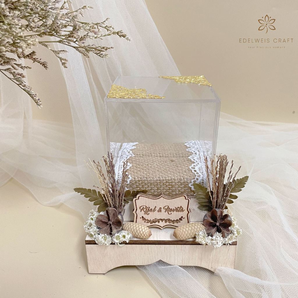 Kotak Cincin Pernikahan Kayu Akrilik Gaya Rustic bonus Custom Nama