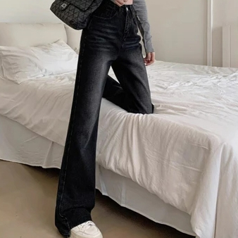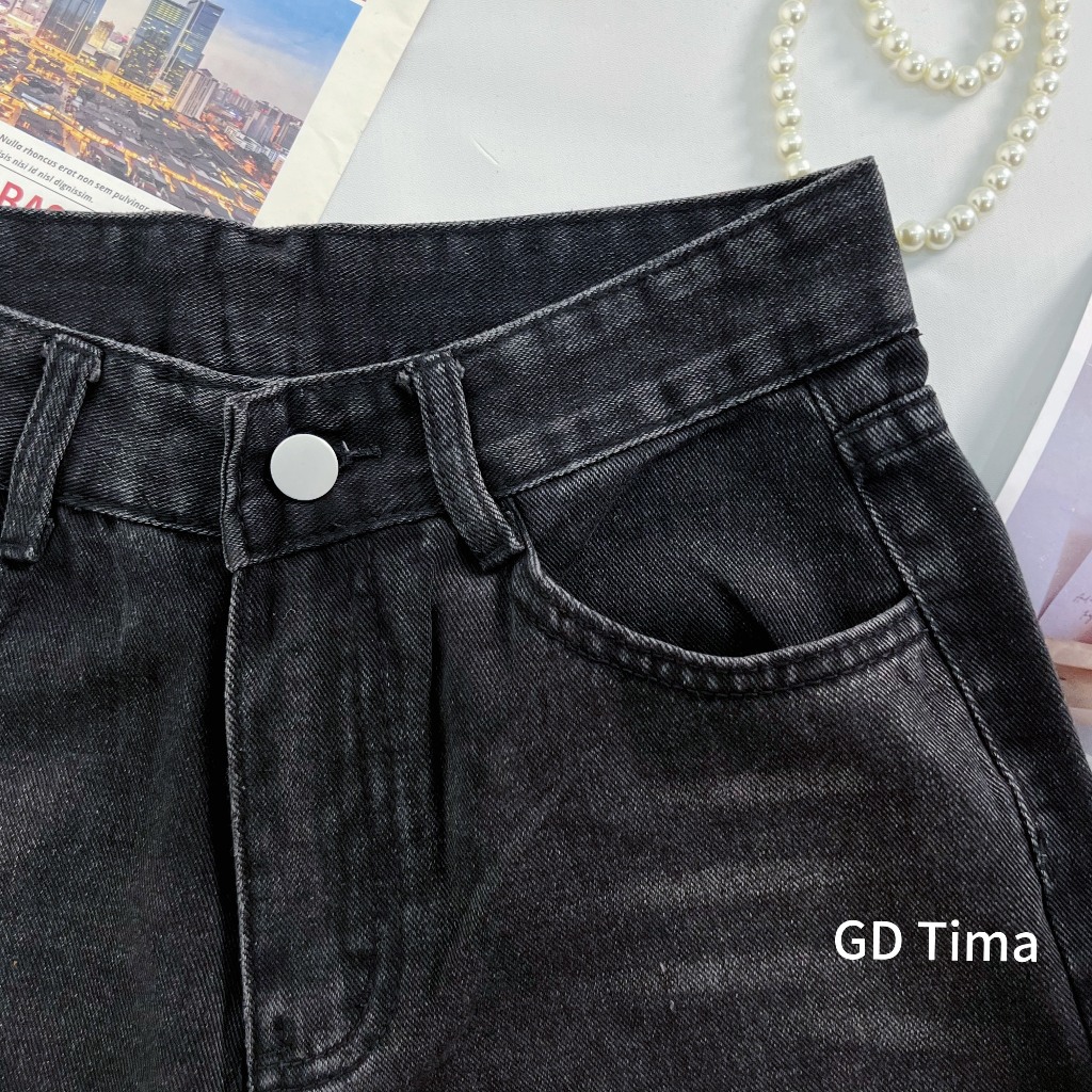 GDTIMA Celana Jeans Cutbray Denim Wanita Retro Highwaist Loose Kekinian Kaki Lebar