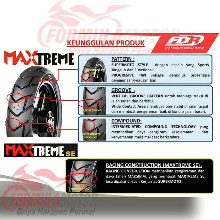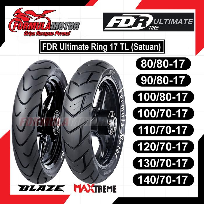 Ban Fdr Ultimate Ring 17 Tubeless All Type Blaze/Maxtreme Ban Tubles Motor Bebek/Sport Ukuran 80/80, 90/80, 100/70, 1