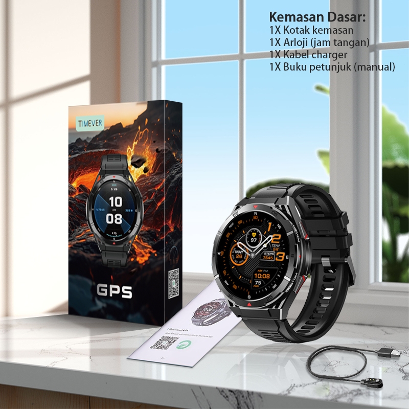 TIMEVER TR2 5ATM Built-in GPS Track Map Route Back AOD jam tangan pintar Pressure Altitude Compass Military Super Smartwatch Waterproof Explorer