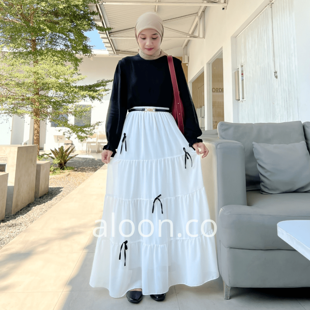 Laluna Rok Rempel Pita Ceruty Babydoll Premium – Rok Susun Ruffle Maxi Skirt Panjang