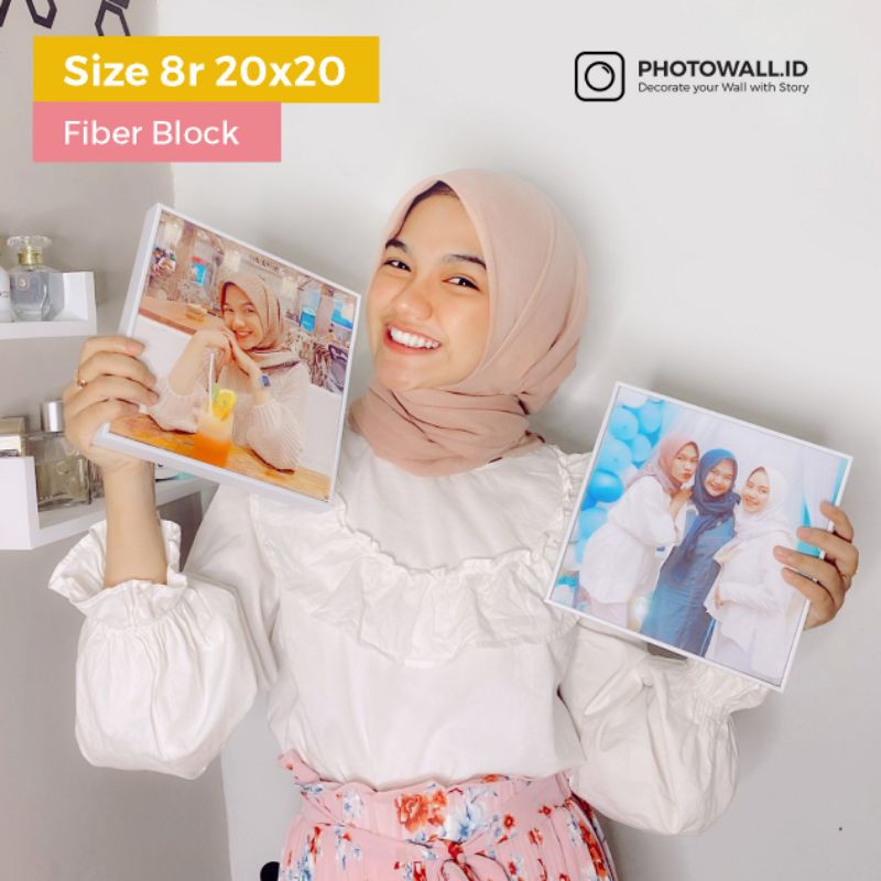 [Paket 4 Foto] Cetak Foto + Bingkai Fiber Block Tebal 8r 20x20cm Tinggal Tempel