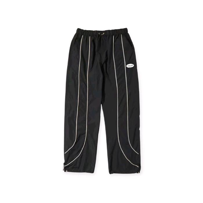 Logic.Style Celana Panjang Unisex Vintage Nylon Celana Panjang Gesper Pungsional Longgar Baggy Hitam Pants K660 Straight