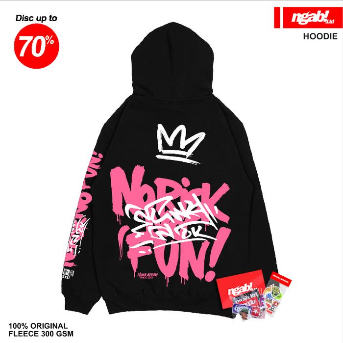 Gratis, Stiker, Lanyard Ngab Hoodie Jumper No Risk No Fun Hd035 Hitam Unisex Cowok Cewek Pria Wanita Fleece Tebal Lem