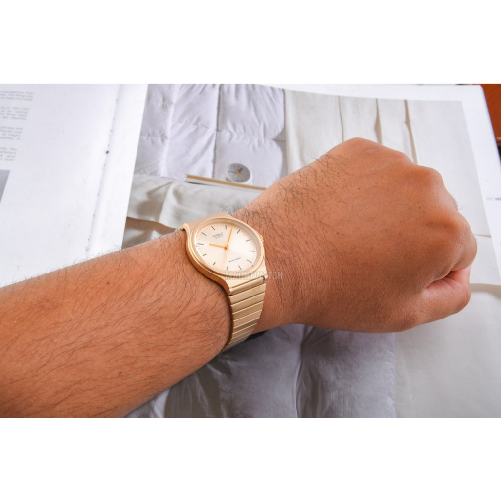 Jam Tangan Unisex Analog Casio Standard MQ-24G-9EDF MQ24 MQ-24G Gold Dial Gold Stainless Steel Band