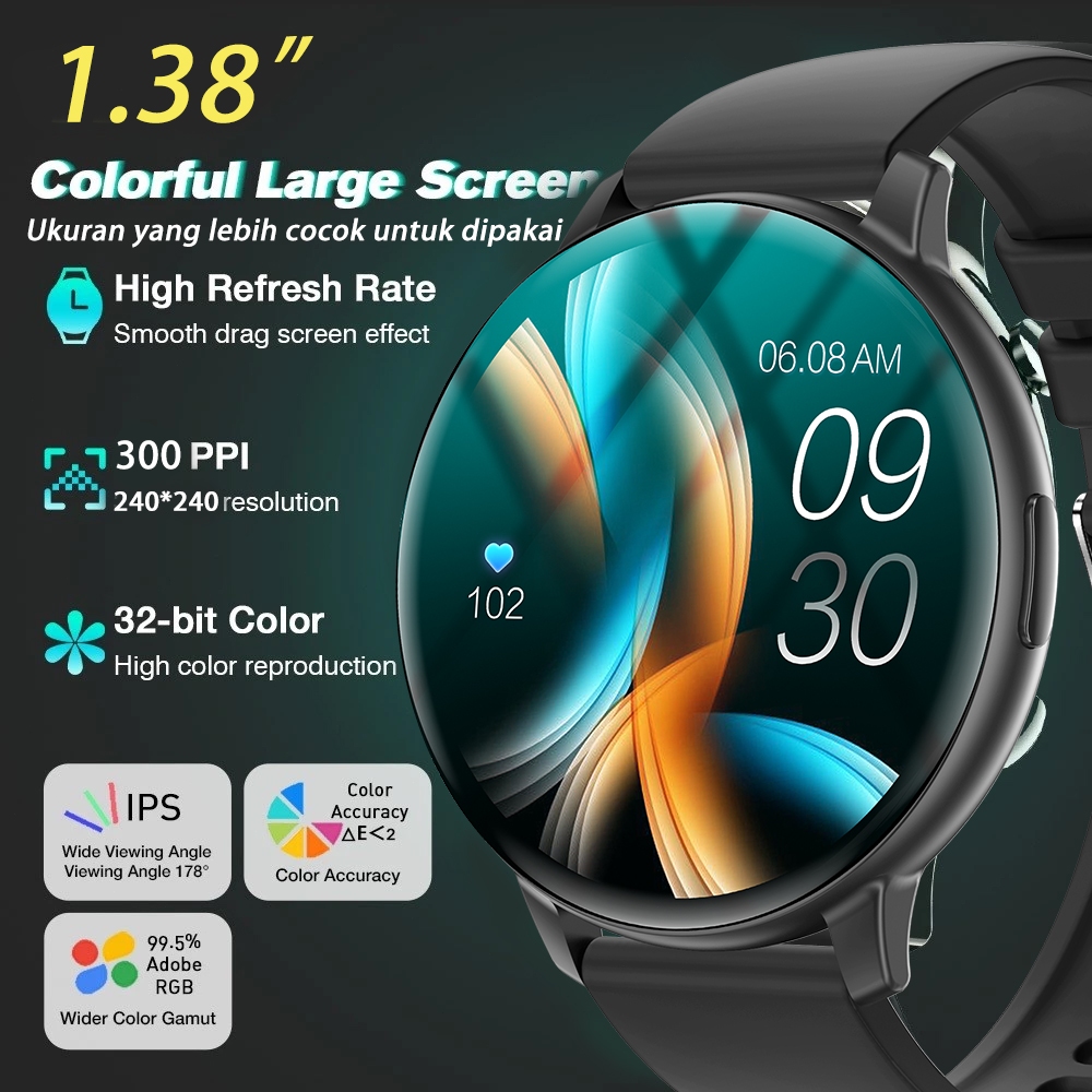 TIMEVER GTR S Jam Smartwatch Waterproof 1.38 Inch HD Touch Screen Wallpaper Kustom Jam Tangan Pria Wanita Health Monitoring
