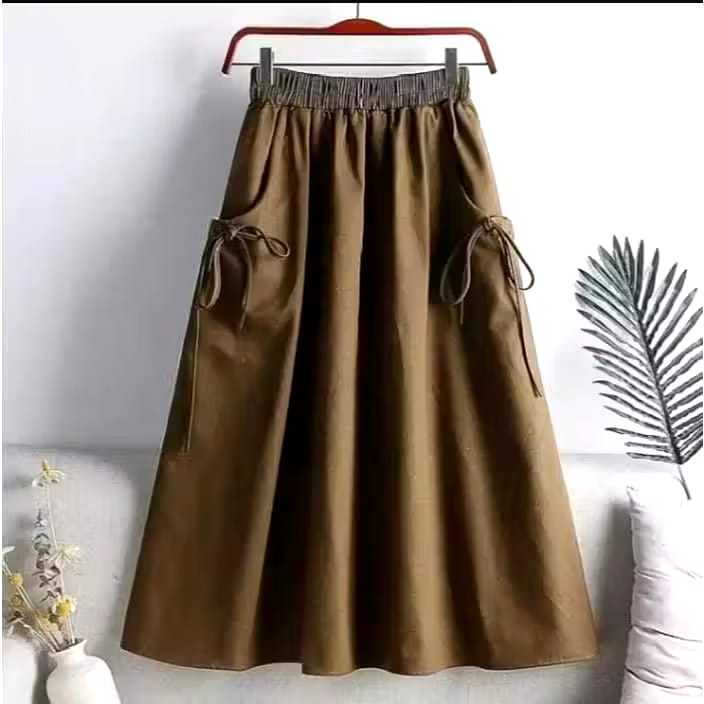 Rok Panjang Anak Cargo Muslimah Cringkel Hitam Putih Abu Mocca Usia 1-16 Tahun