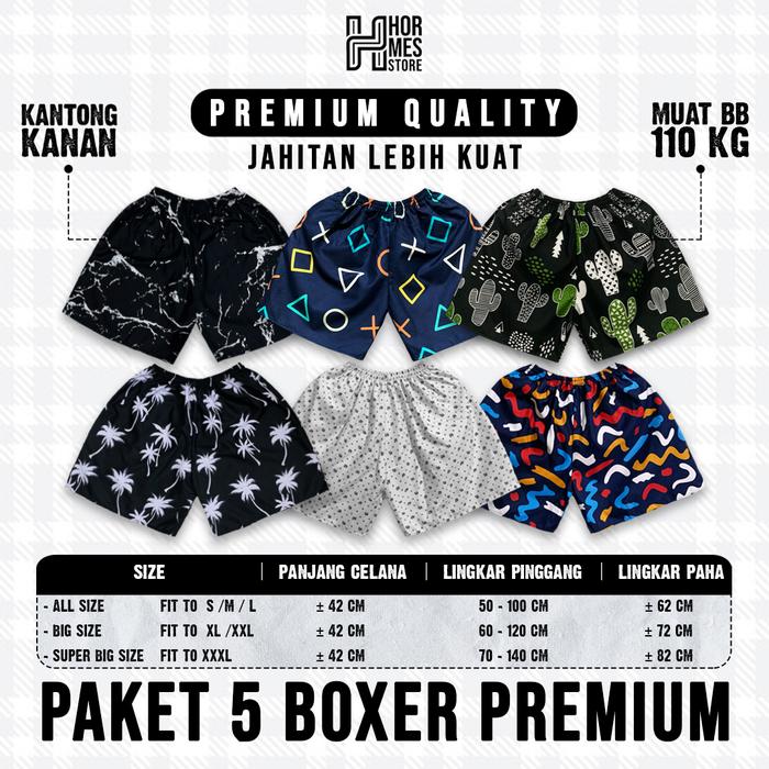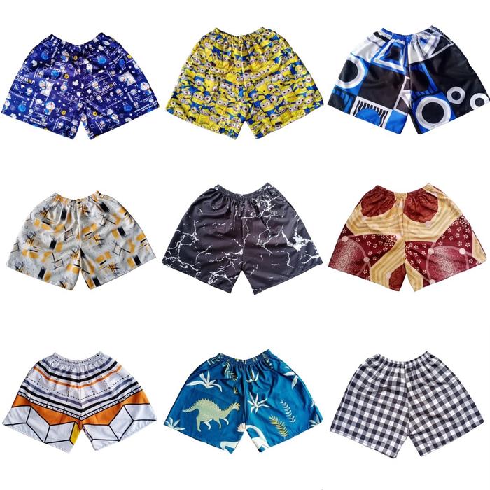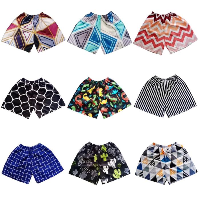 Paket 5 Pcs Celana Boxer Premium | Celana Santai Pria Wanita | Boxer Motif | Celana Pendek | Celana Kolor - 3 Pcs Motif