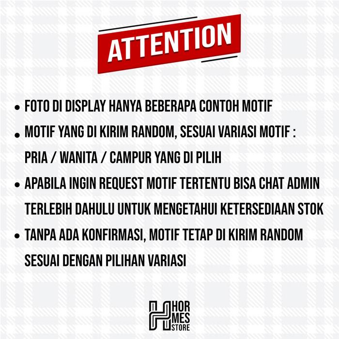 3 Pcs Motif Pria, 3 Pcs Motif Wanita, 3 Pcs Motif Campur, 5 Pcs Motif Pria, 5 Pcs Motif Wanita, 5 Pcs Motif Campur, 10 Pcs Motif Pria, 10 Pcs Motif Wanita, 10 Pcs Motif Campur