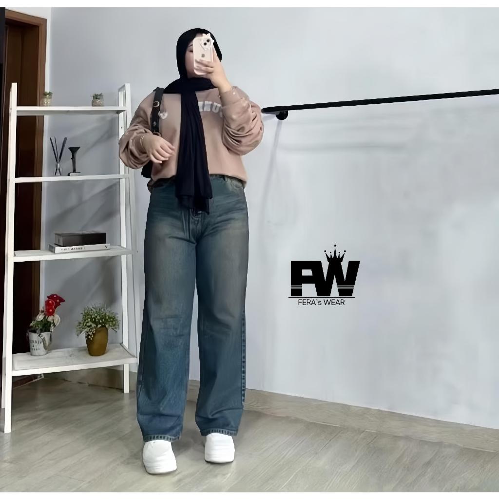 Celana Baggy Jeans Wanita Jumbo Pinggang Highwaist Celana Kulot Wanita Big Size