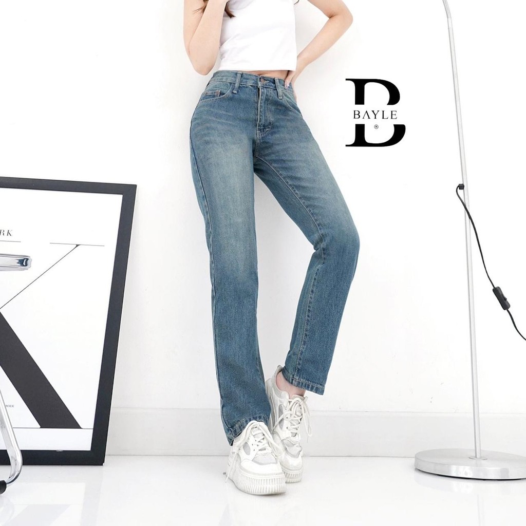 [BAYLE] - 1019 BF JEANS | Celana Jeans Wanita Jeans Boyfriend Jeans Biru Retro Jeans Loose Jeans