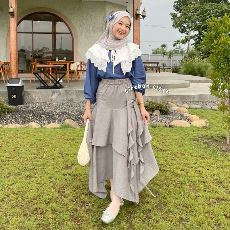 KIYANA Cirebon Cloth - Bellerose Skirt / Aesthetic Skirt / Rok Bunga / Rok Asimetris