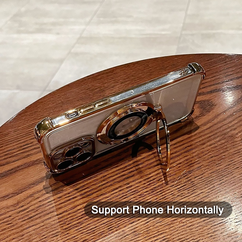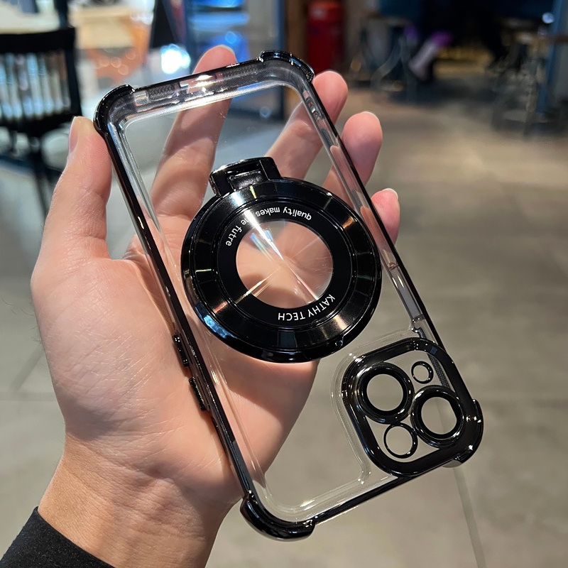 CrashStar With Lens Films MagSafe Magnetic Stand Airbag Anti-fall Plating Transparent Hard Phone Case For iPhone