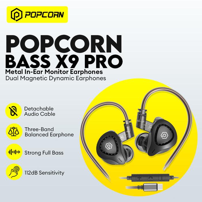 POPCORN BASS X9 PRO Earphone HIFI In-Ear Dual Magnetic Bass Mic & Volume Control Jack 3.5mm/Type-C