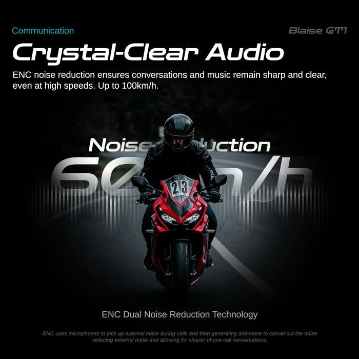 BLAISE GT1 Helm Motor Intercom Headset Musik Sharing untuk 2 Pemakai Jarak 1000 Meter Bluetooth 5.3