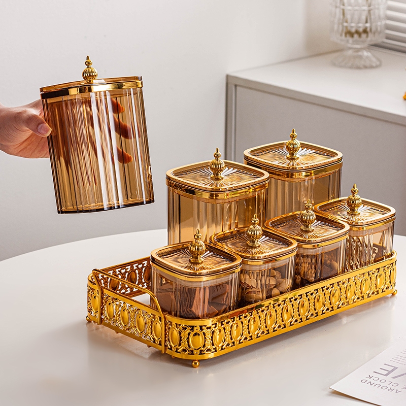 7pcs Toples Set Mewah Snack Tray Jar Snack Bowl Tempat Saji Snack Cemilan Kotak Makanan Toples Lebaran Set Nampan Tople