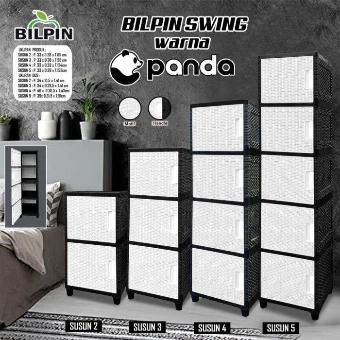 AKAKO Lemari Plastik Serbaguna Pakaian Laci SWING PANDA Lemari Baju 2 3 4 5 susun MURAH Hitam Putih