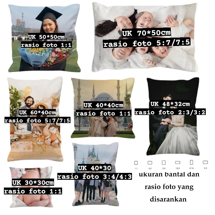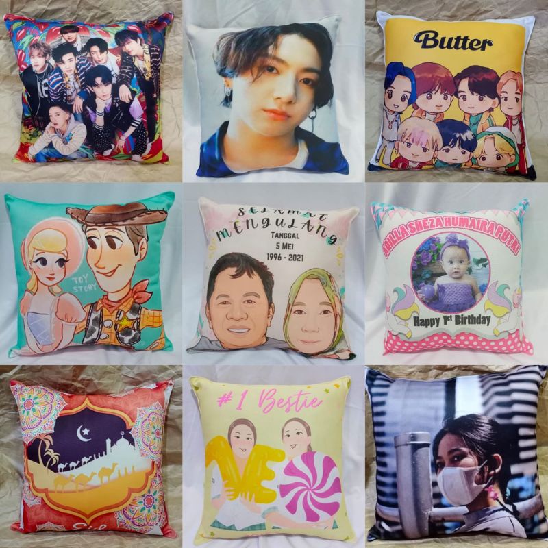 Bantal Custom Foto 2 sisi ukuran 40x40, 30x30, 40x30, 48x32. 2sisi