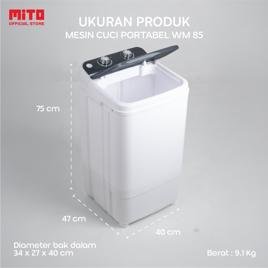 MITO WM85 PORTABLE WASHING MACHINE | Kapasitas 5KG | Click & Dry | Mesin Cuci Mini