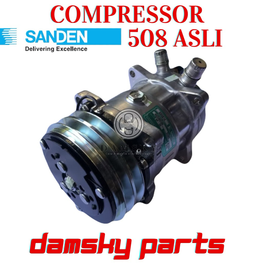 Kompresor Compressor AC Mobil Sanden 508 Asli 12 Volt / 24 Volt Truck Fuso Hino Universal Truk (Baru/New)