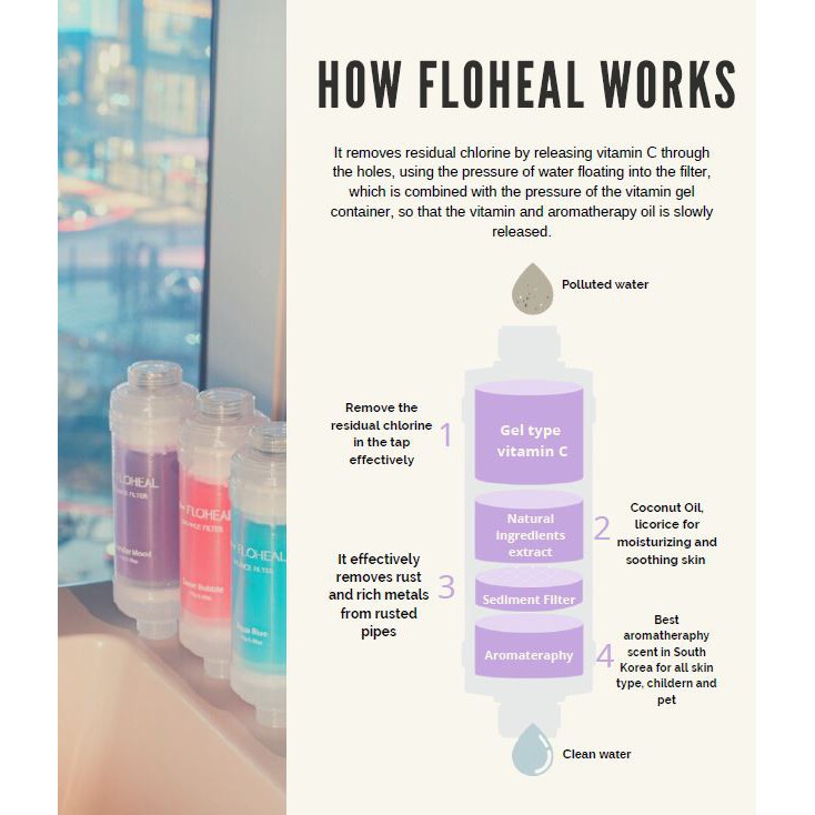 [Aqua Blue] FLOHEAL Korean Shower Filter Vitamin C Shower Filter Aqua Blue