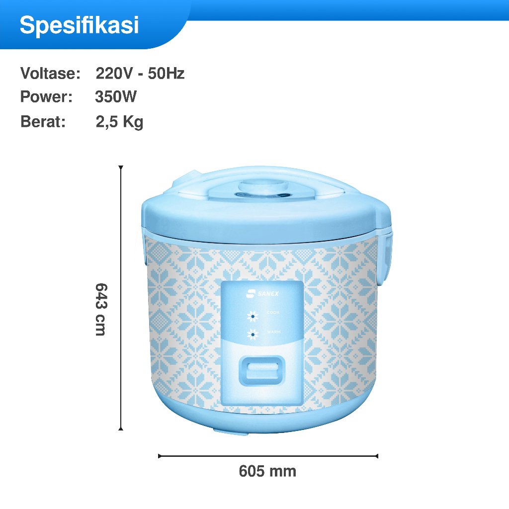 SANEX Rice Cooker Penanak Nasi Anti Lengket 3 in 1 ART Series 1,8 L