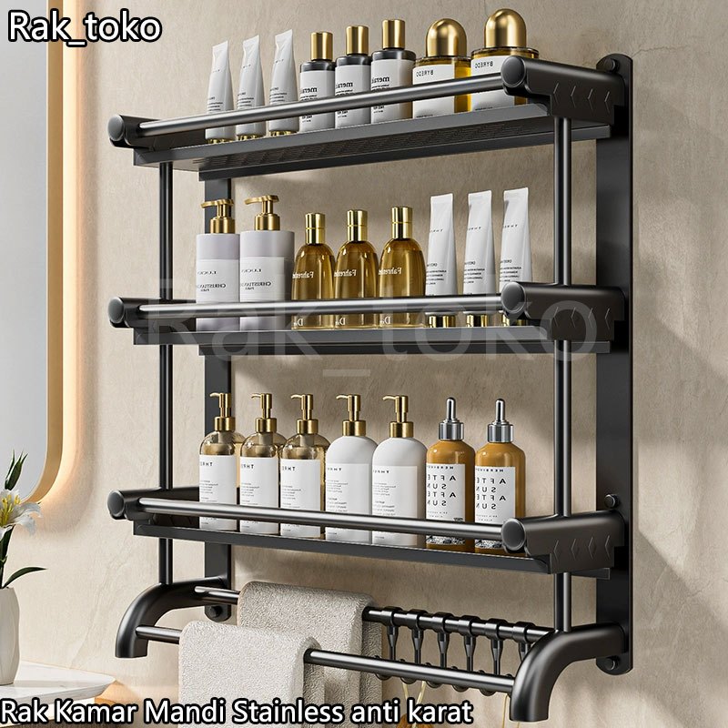 Rak Kamar Mandi Stainless anti karat Rak Sabun Kamar Mandi HitamDinding Gantungan Handuk kamar mandi